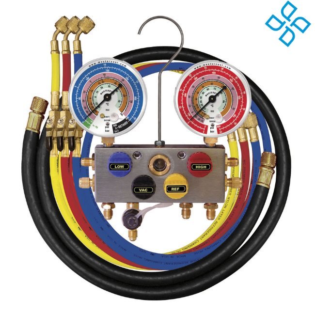 Mastercool 3/8″ bore 4-way manifold delivers fast charging/recovery, smooth 90° ball valves, and durable analog gauges. Available in Qatar via ETC Doha.