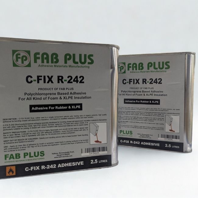 C-FIX R-242 is a premium insulation adhesive in Qatar, designed with neoprene-based elastomeric nitrile technology to deliver strong and lasting bonding performance. Specifically developed for HVAC ducts, chilled water pipelines, pipe sections, and insulation slabs, it ensures reliable adhesion in both residential and commercial systems. This adhesive is highly effective on rubber-to-rubber and rubber-to-metal surfaces, making it one of the most versatile products for mechanical insulation in Qatar’s construction sector. Because of its flexibility and resistance to environmental stress, it maintains insulation performance even under extreme temperature and humidity conditions.